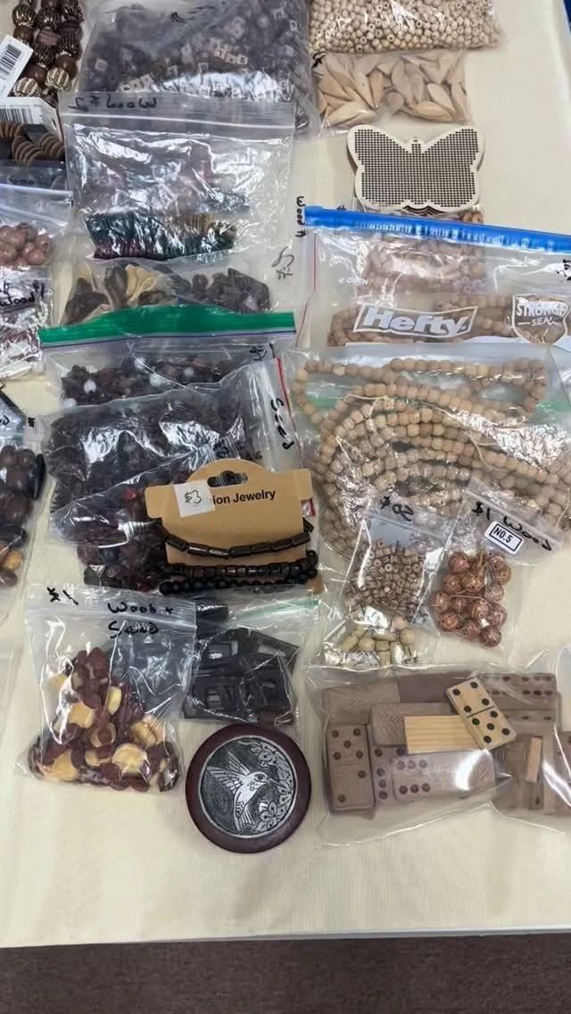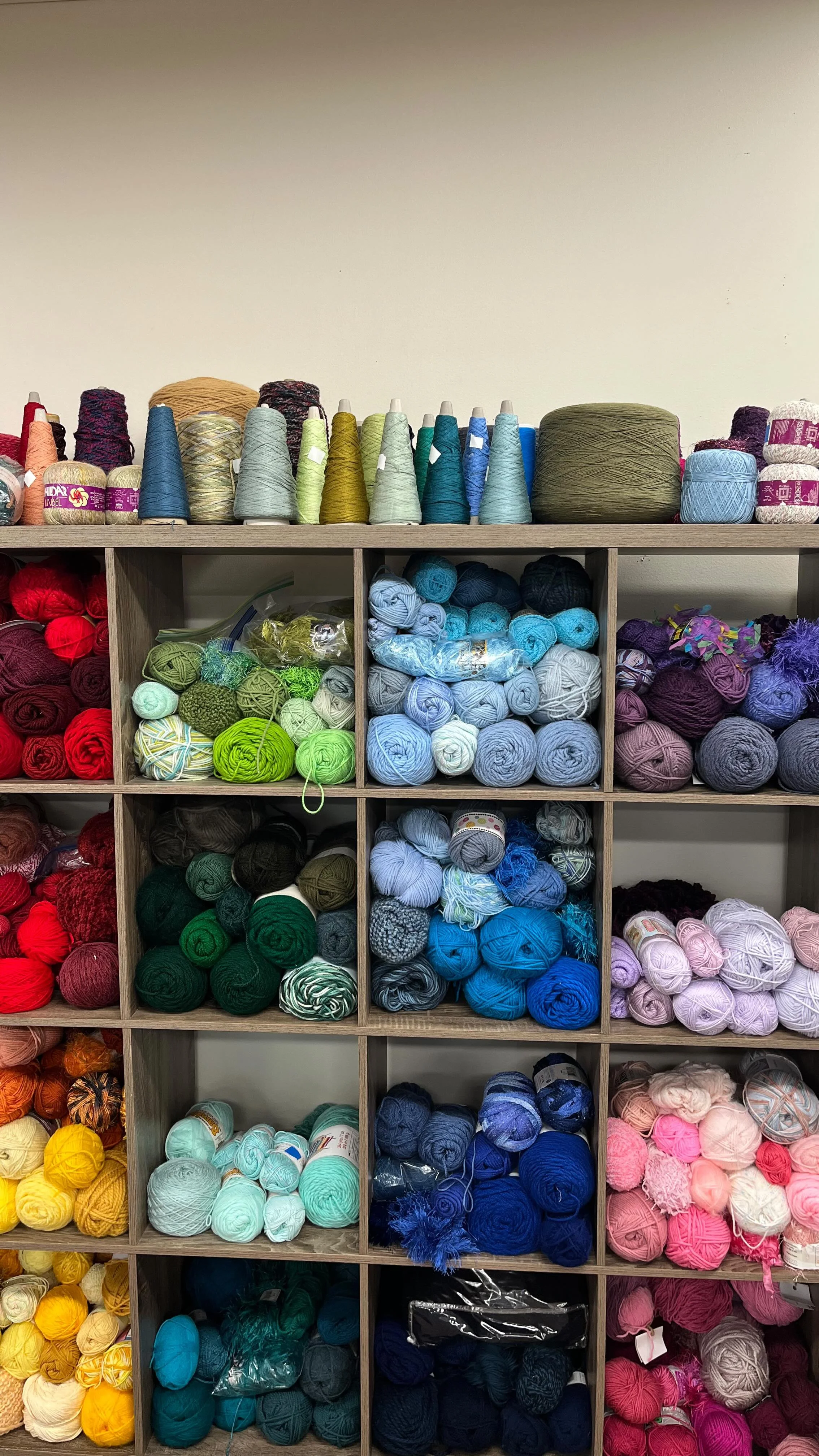 Yarn, roving, string , iron-on transfers, buttons, zippers, thread, fabrics of all kinds, vintage flowers, school supplies, miscellaneous craft items, paper supplies, photo albums, frames, homemade paper, paint, cards, loose parts for creative building, candy molds, contact paper, sale tags, ribbons, corks, science kits, poster board, paper rolls, leather, cigar boxes, jewelry boxes, collage-making kits, and leather-art making kits.